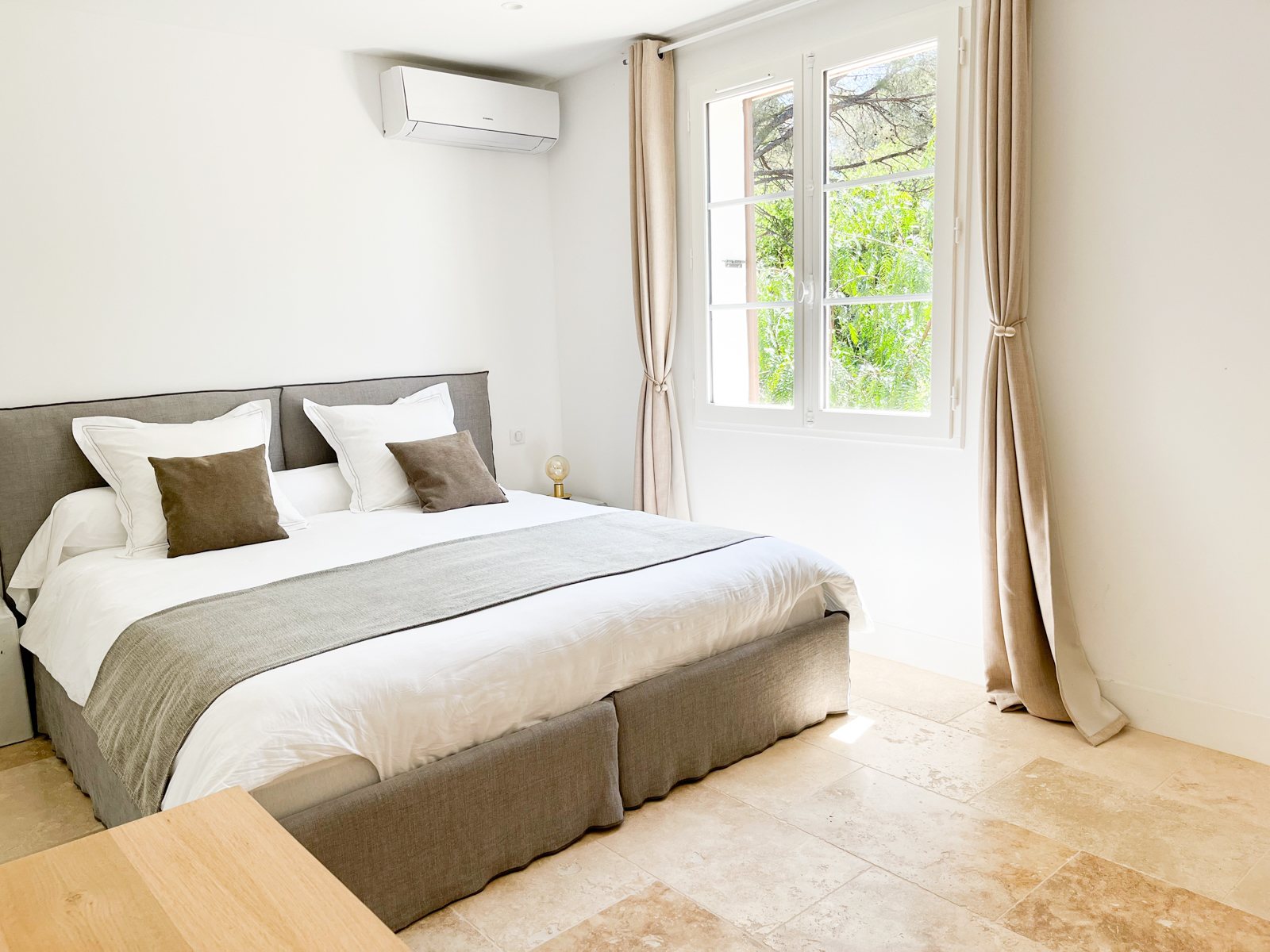 avec climatisation réversible, accès WIFI et prises RJ 45, mobilier haut de gamme, accès à la piscine de 130 m² à débordement, au terrain de tennis, au terrain de boules et au sentier de promenade dans le bois de 3 ha.