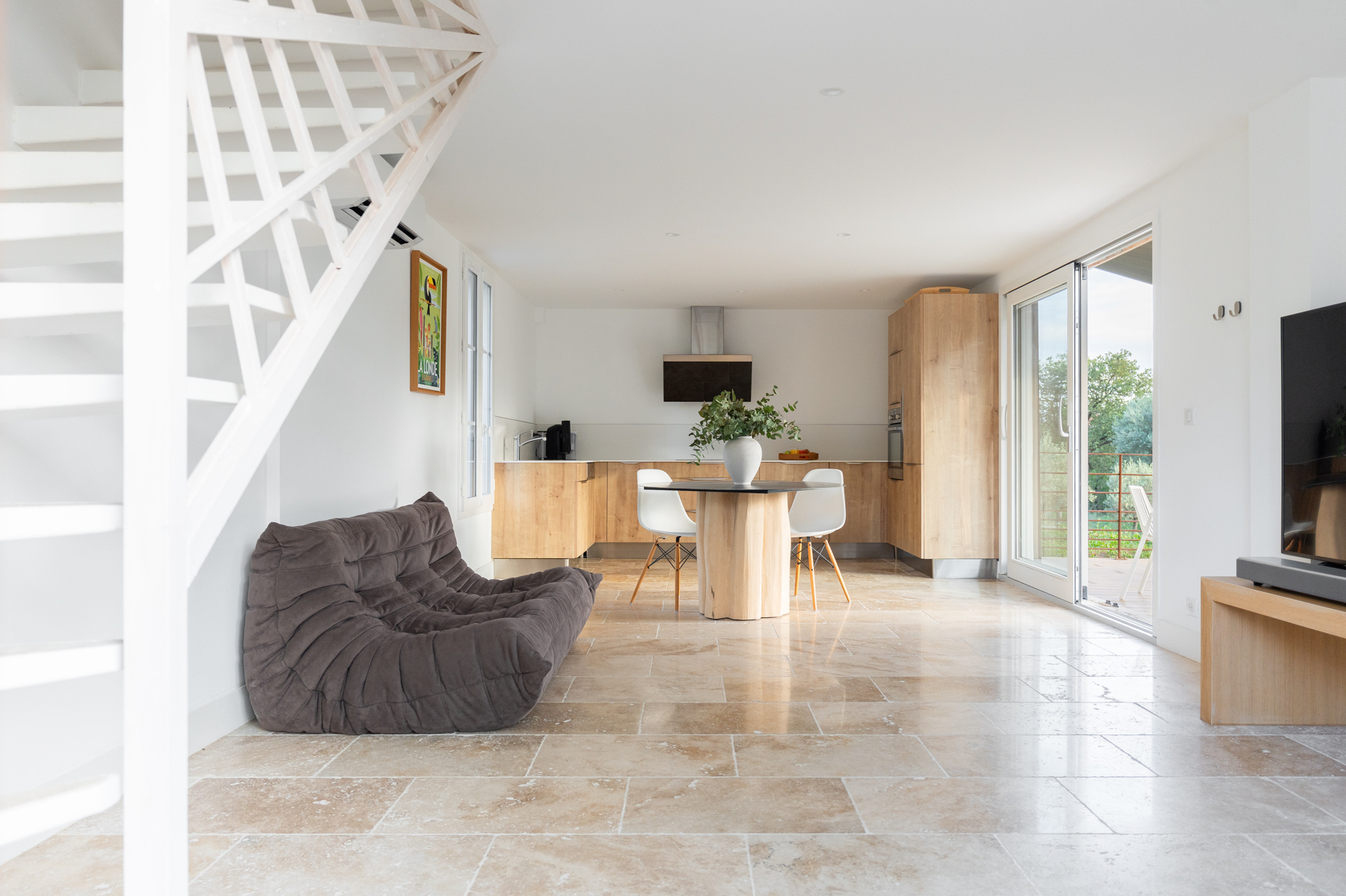avec climatisation réversible, accès WIFI et prises RJ 45, mobilier haut de gamme, accès à la piscine de 130 m² à débordement, au terrain de tennis, au terrain de boules et au sentier de promenade dans le bois de 3 ha.