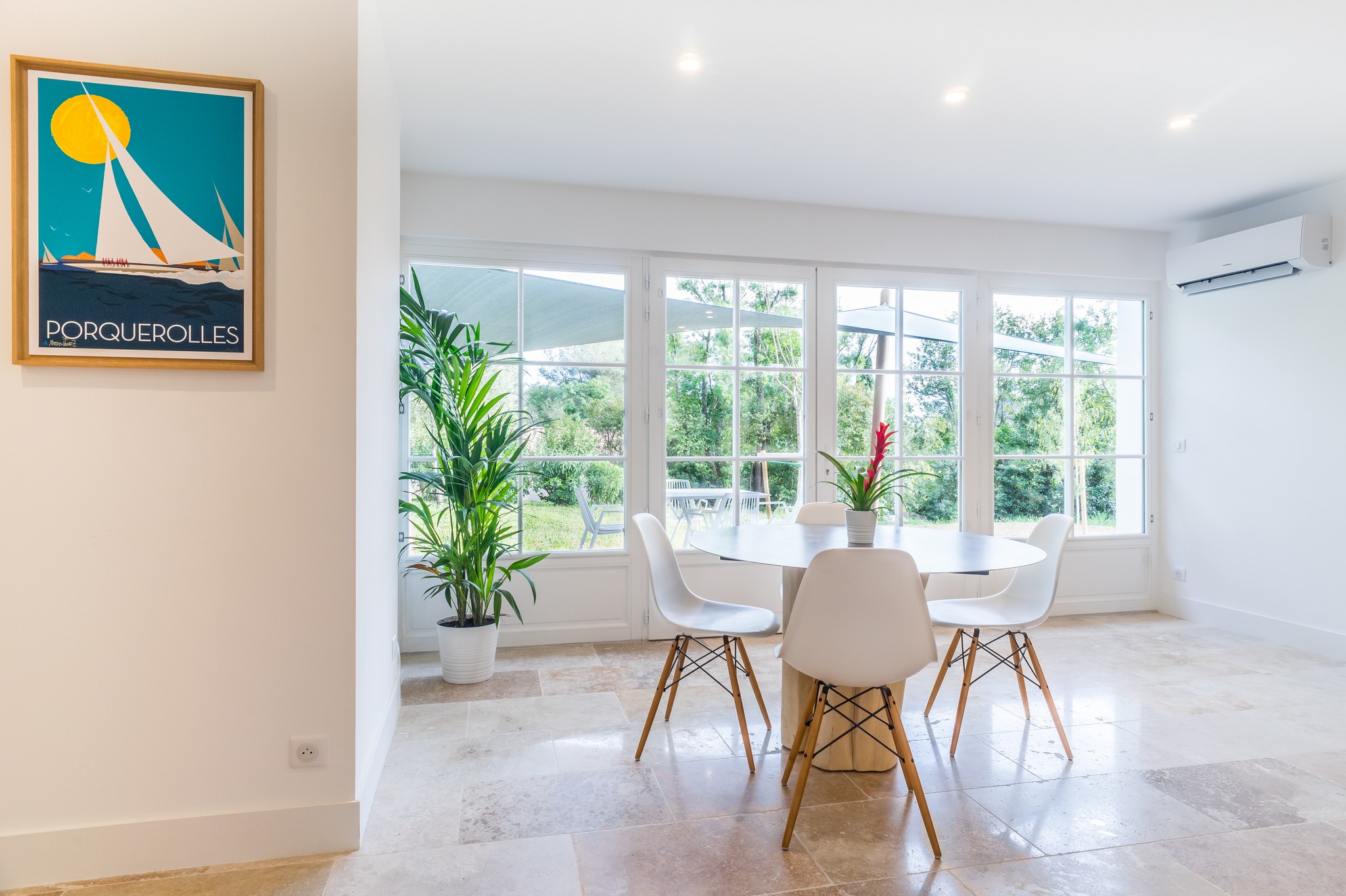 avec climatisation réversible, accès WIFI et prises RJ 45, mobilier haut de gamme, accès privé à la piscine de 130 m² à débordement, au terrain de tennis, au terrain de boules et au sentier de promenade dans le bois de 3 ha.